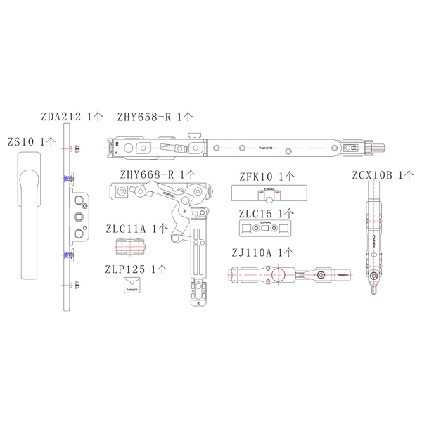 C型槽外平开纱窗一体套装(90° 45KG 传动器025 不含执手 防脱器)