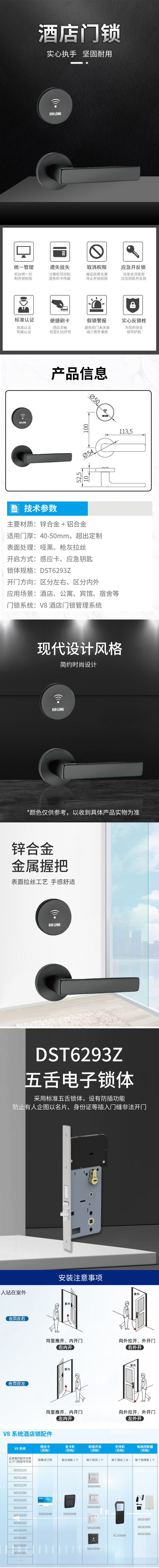 酒店锁 锌合金+铝合金 枪灰拉丝 左内开 DST6293Z SX017 居中装 T=40-50MM 标准 SGY21276