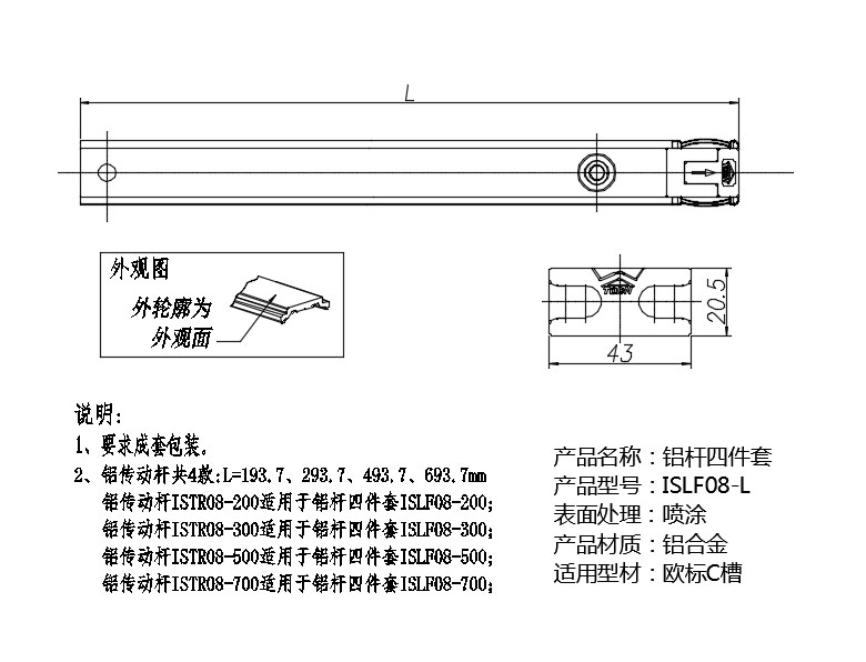 铝杆四件套 6063 喷涂黑 IKSLF08-200