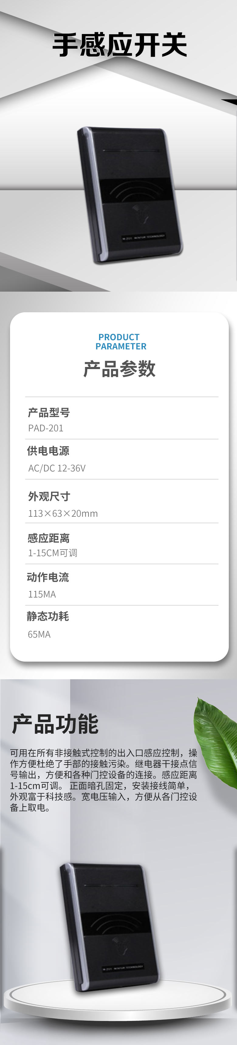 非接触专用房开关 面板700×200×15mm/主控制器145×57×38mm 关门延迟5S、15S、15m手动 PAD-238G