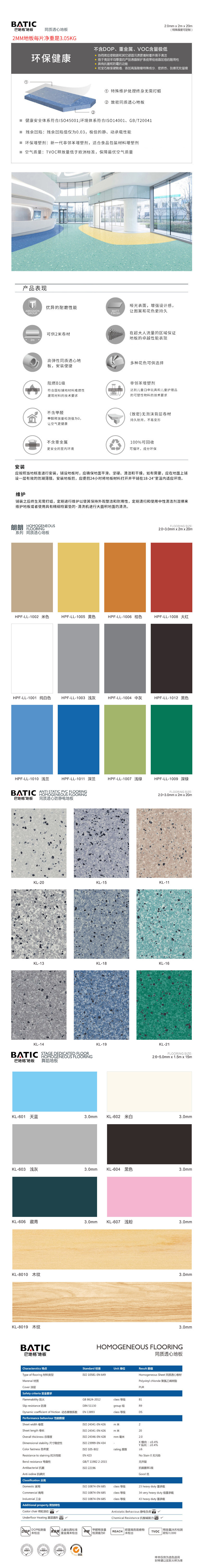 同质透心地板 2MM*2M*20M(H*W*L) pvc HPF-LY-1015 朗耀-1015