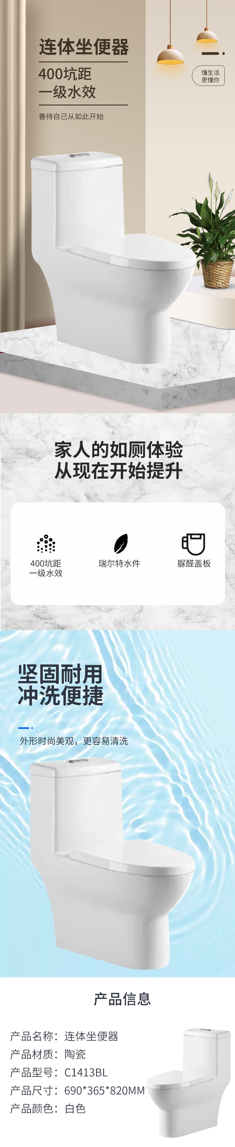 斯飞奥连体坐便器 685*390*750MM 陶瓷 400坑距 一级水效 脲醛盖板 喷射式虹吸 JX6757-4 C1457JX