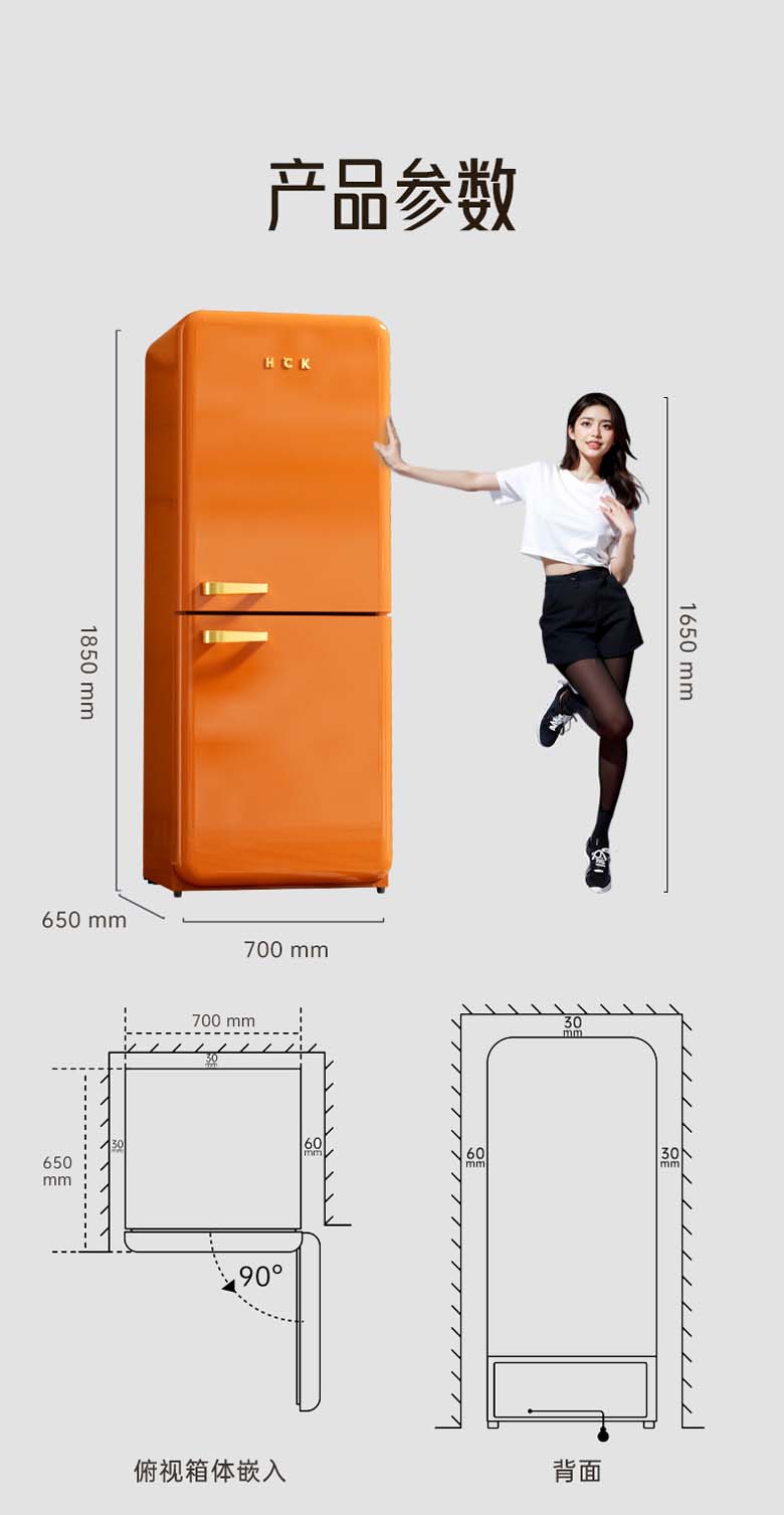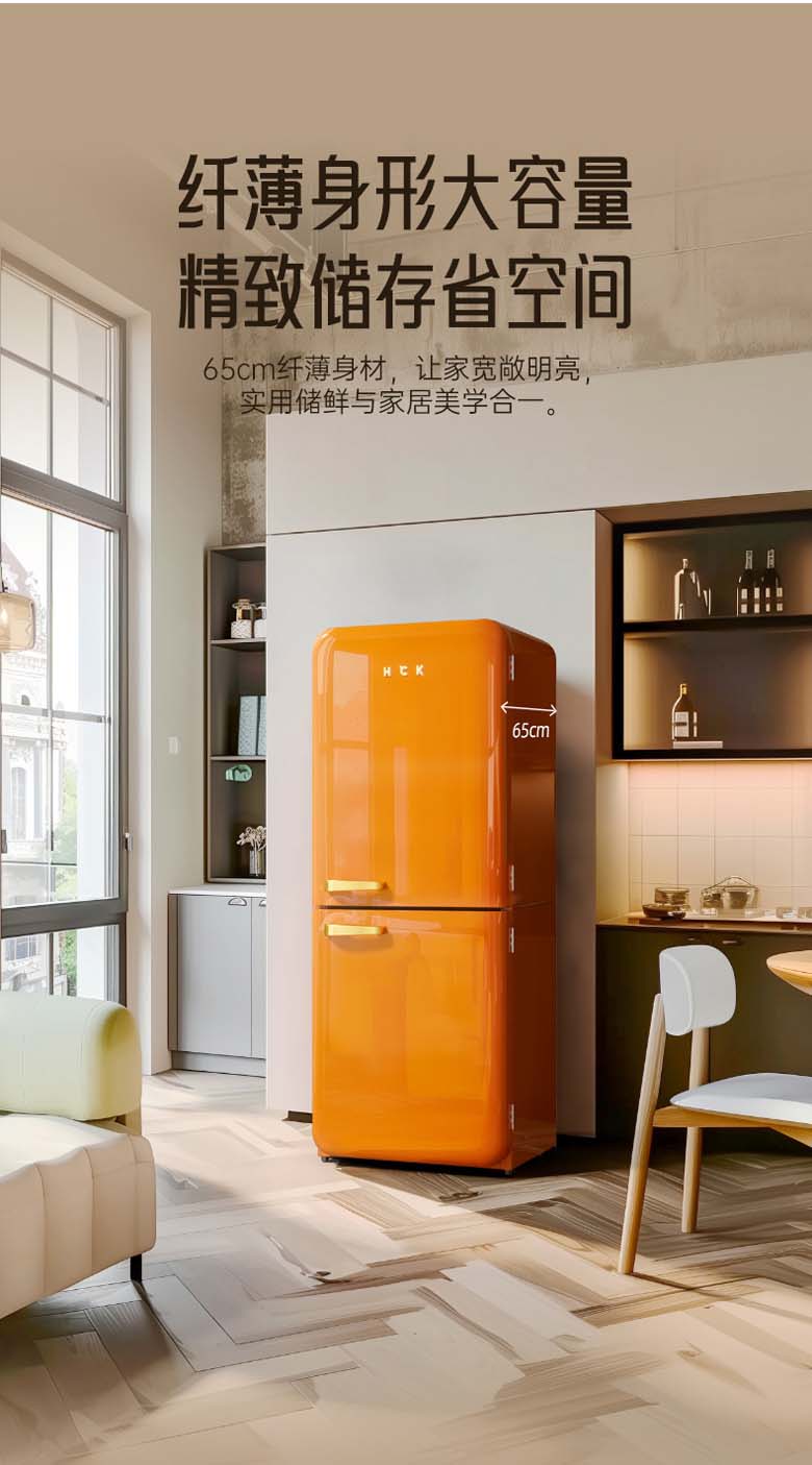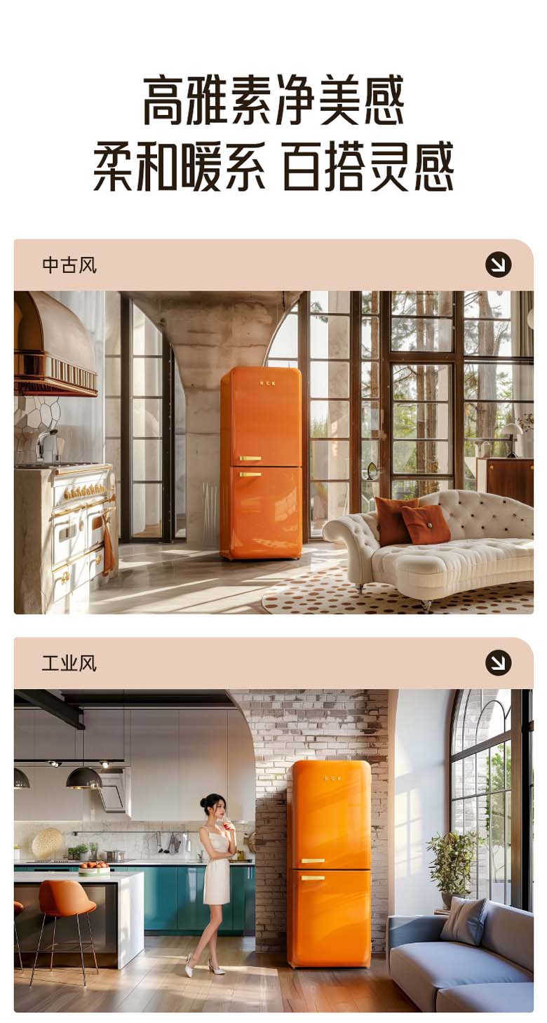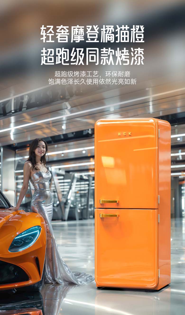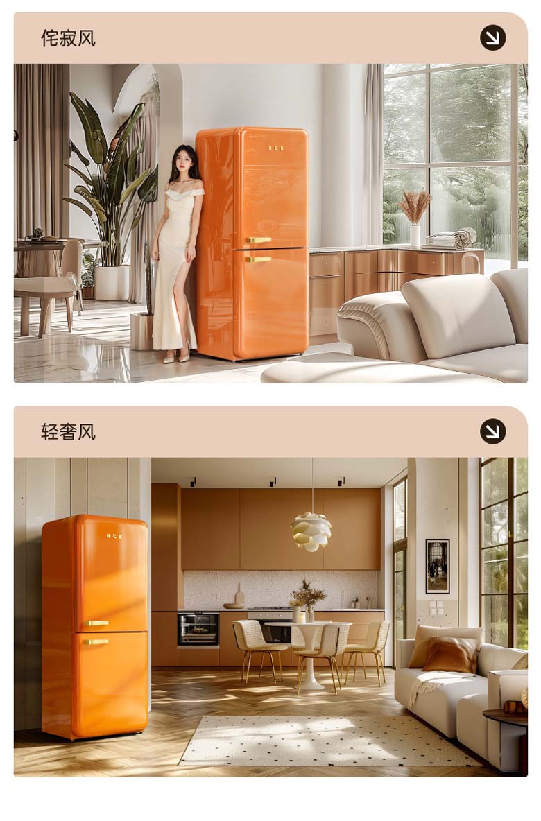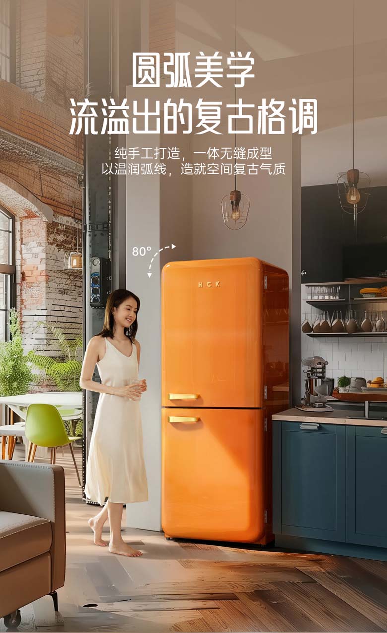 HCK复古圆弧冰箱 610*620*1524mm 橘猫橙 BC-330RDE