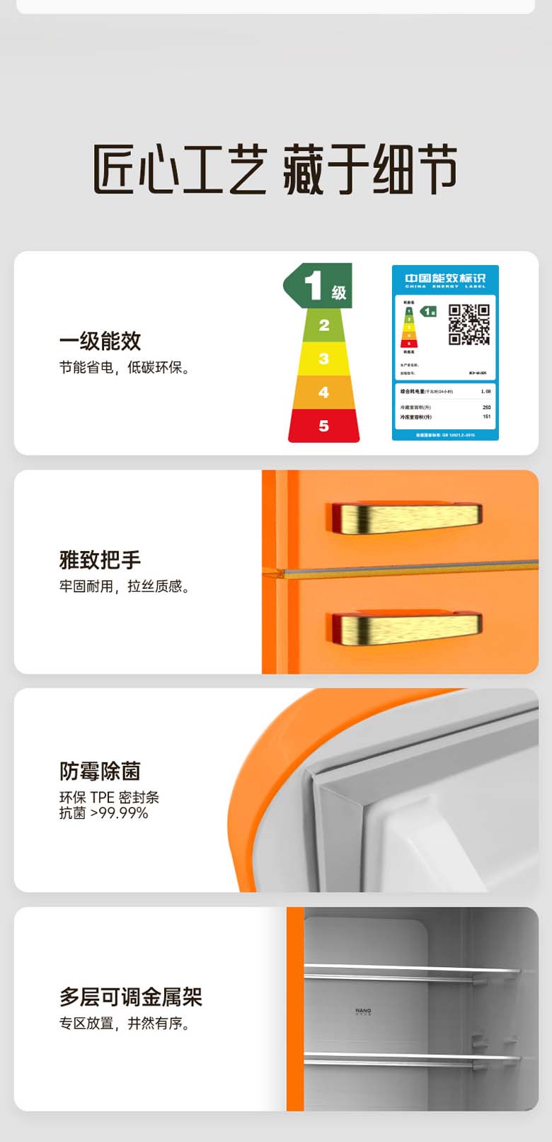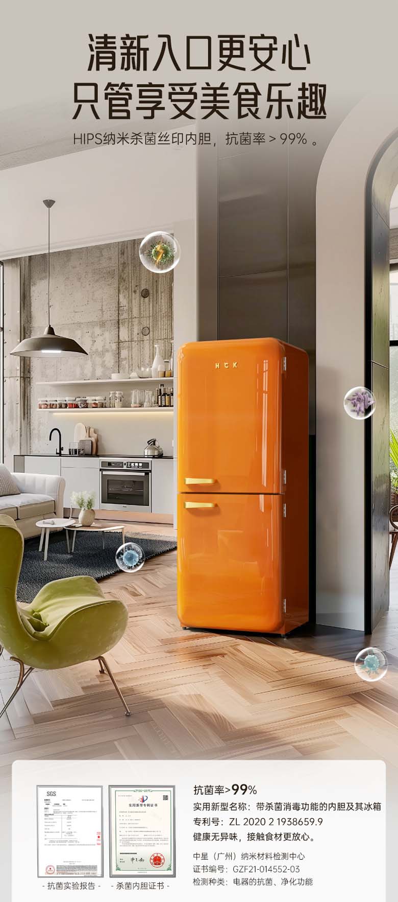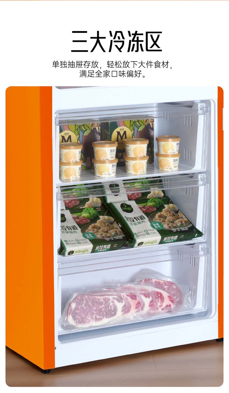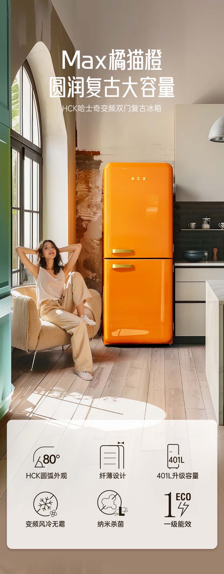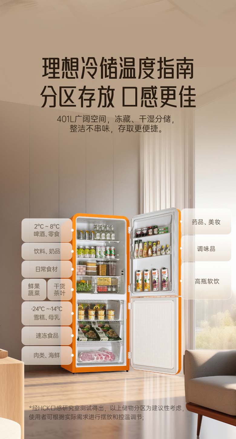 HCK复古圆弧冰箱 610*620*1524mm 橘猫橙 BC-330RDE