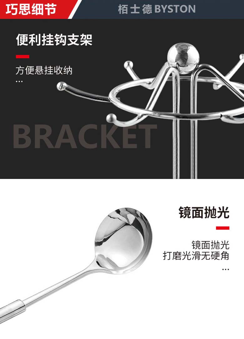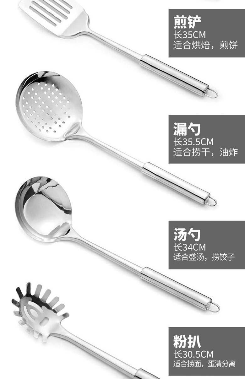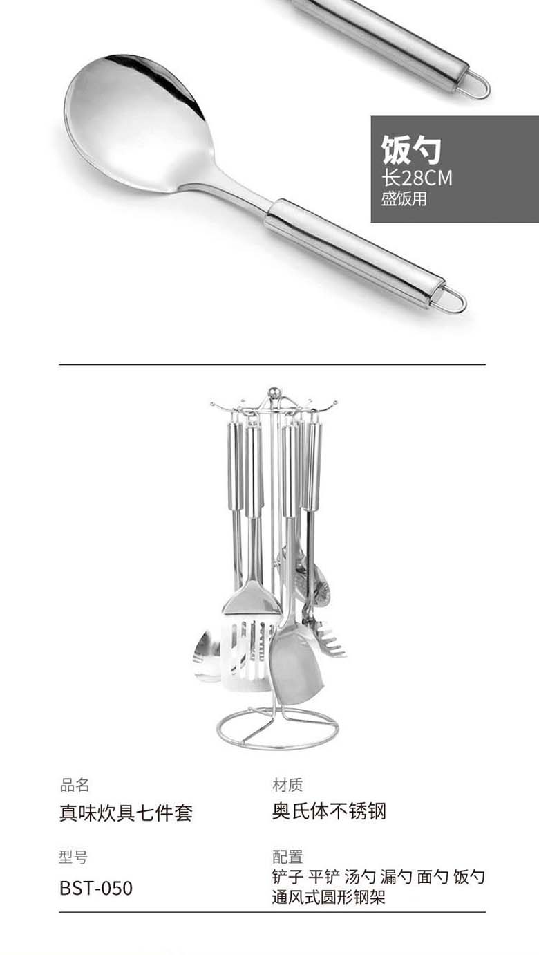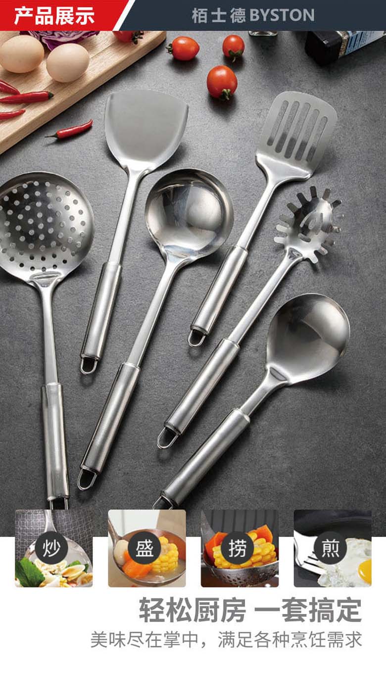 ASD不锈钢铲具六件套 中式铲+漏铲+汤勺+漏勺+饭勺+挂架 SSQ-06G-UGO