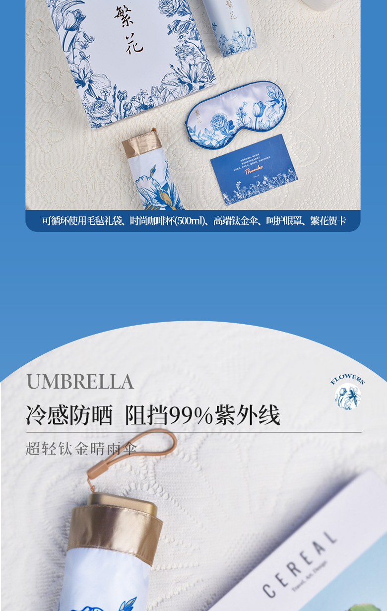勿一_繁花呵护系列礼盒套装2 毛毯*1+眼罩*1+雨伞*1 WY-002