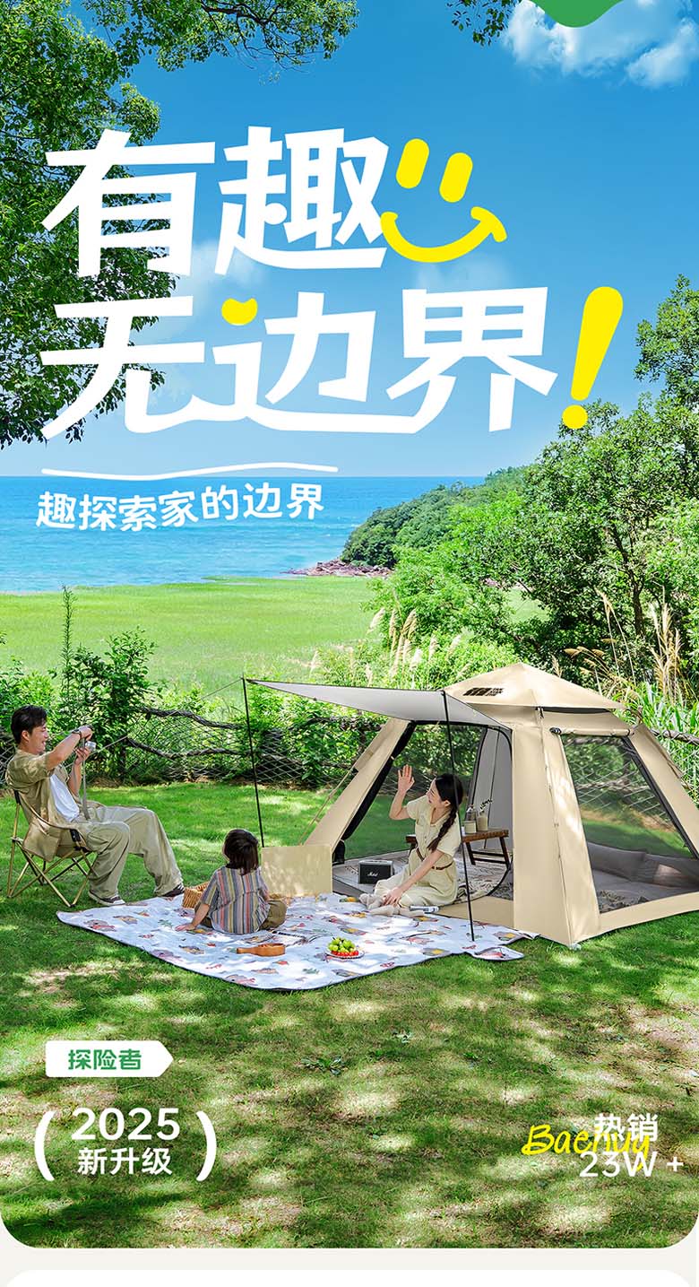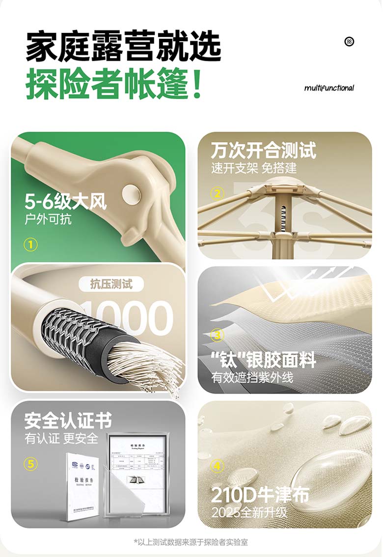 Diplomat 外交官 方形自动帐篷-米配咖(3-4人) 200X200X140cm DFJ-109