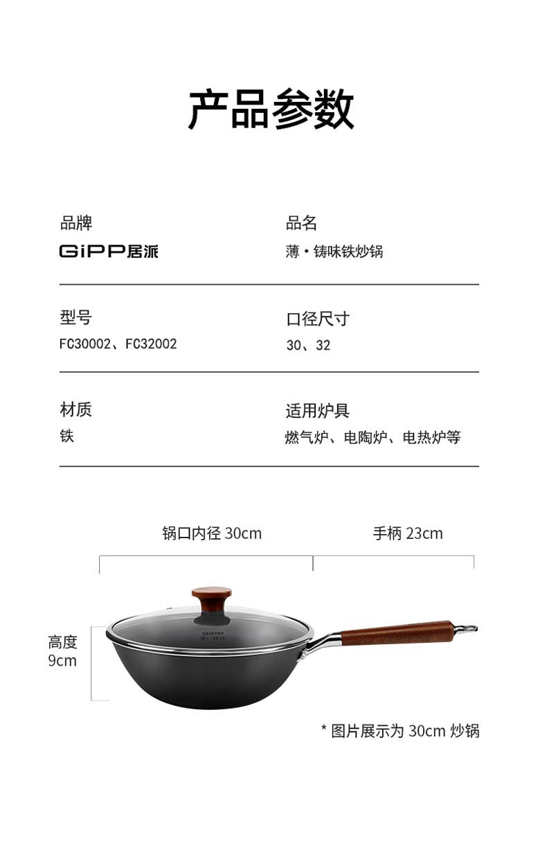 GIPP 0涂层钛不粘炒锅 32cm GSC3205EB