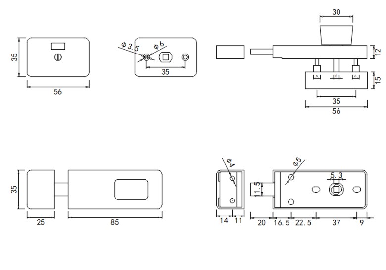 指示锁 54MM 铝合金 金色 板厚下单备注 金色方形锁 KL882-2