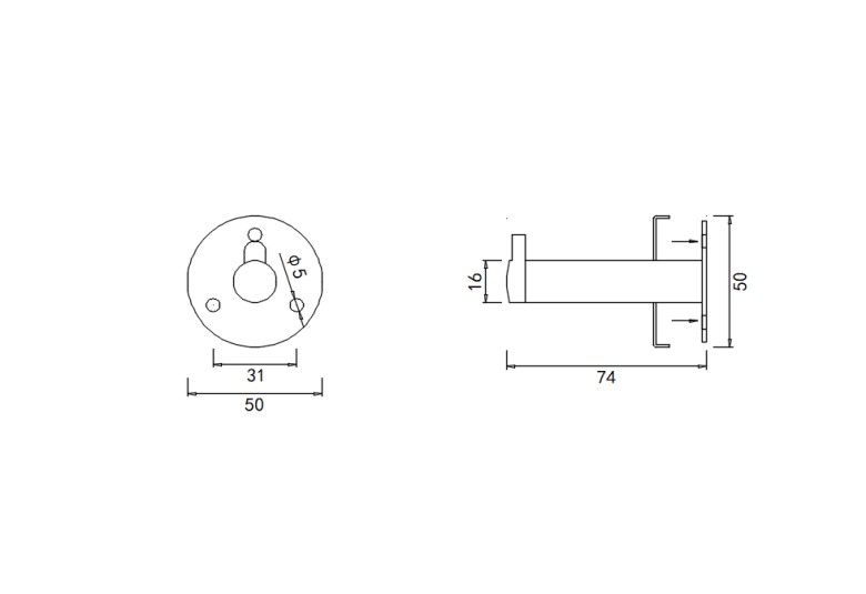 衣钩 L40XW64MM 304 钢色 圆弯 KL-8807