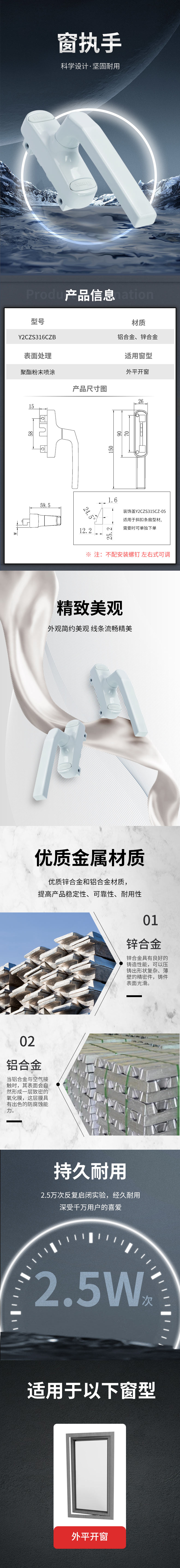 歪把执手 铝合金 瓷晶银 ZX-CZSY2540R