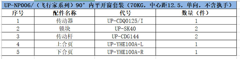 90°内开内倒套装(70KG 下料不可调 窗宽326 中心距12.5 不含执手)