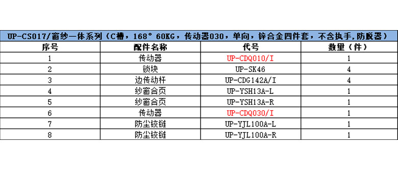 C型槽外平开纱窗一体套装(168° 45KG 传动器030 不含执手 防脱器)