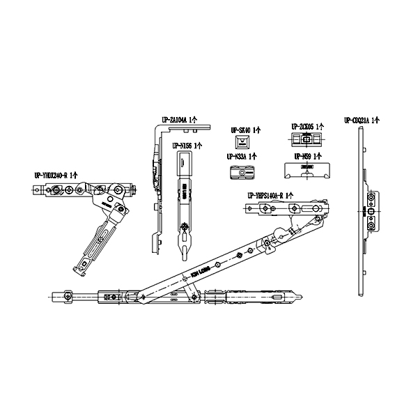 180°内开内倒套装(100KG 下料可调 合页不可调 窗宽380 拨叉款 不含执手)
